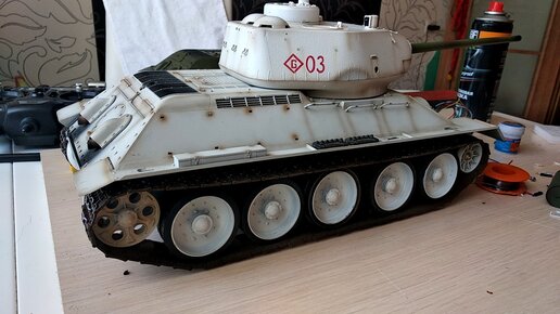 Т-34-85 на радиоуправлении. Первый запуск после ремонта.