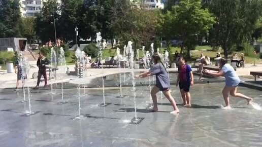 Юные десантники купаются в фонтанах