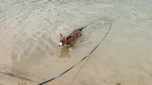 Корги Джаггер купается.