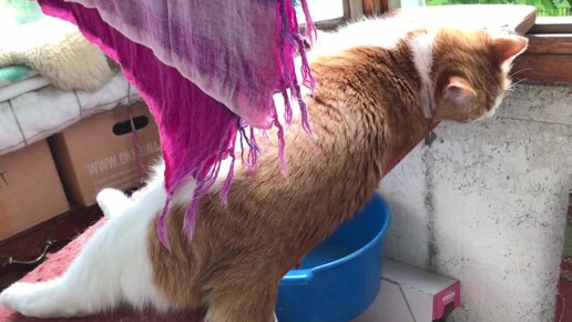 Кошка Рыся балдеет. Мимо пацаны на тарантасе смешном проехали.