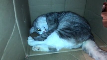 Сенька в коробке так мило улегся.