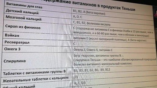 ВИТАМИНЫ В ПРОДУКЦИИ ТЯНЬШИ
