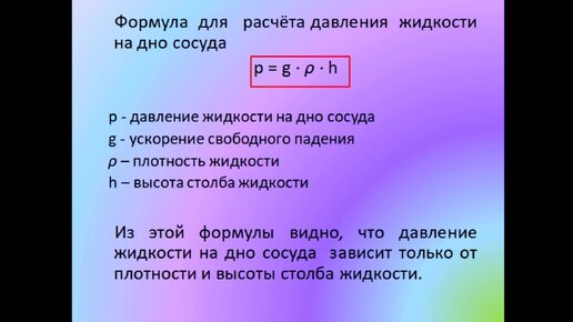 Физика 7 класс Расчет давления жидкости на дно и стенки сосуда