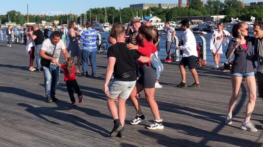Красивая пара танцует латиноамериканские танцы на Питерской набережной