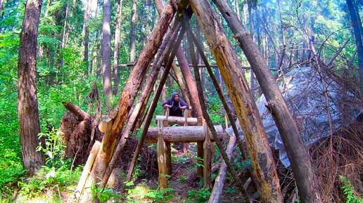 Укрепление опор укрытия для сушки осиновых веников. готовил мясо.