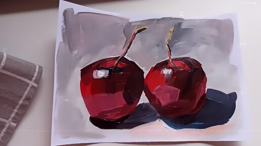 СПЕЛЫЕ ВИШНИ АКРИЛОМ.ОТЛИЧНЫЙ УРОК ДЛЯ НАЧИНАЮЩИХ.