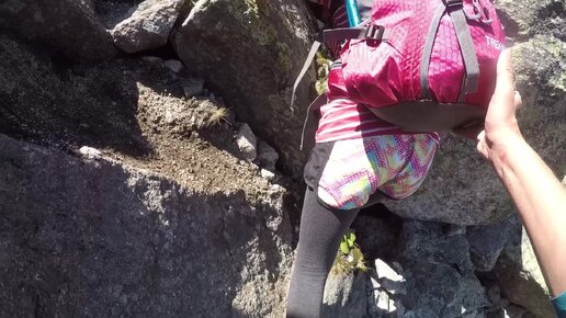 Пошёл в поход, где были не очень опытные участники. Вот так мы помогали им спускаться по курумнику с перевала