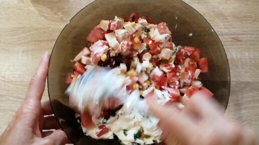 Вкусный салат с копченой грудкой. Всегда готовлю к просмотру фильма.