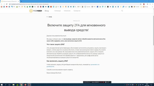 Мгновенный вывод криптовалюты с NiceHash. Включите 2FA