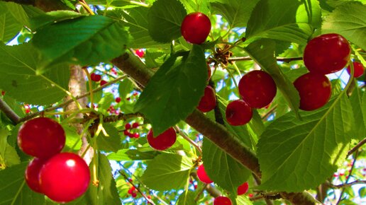 Поспела вишня в саду