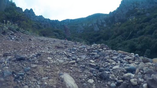 Поднимаюсь по тропинке к Долине Привидений в Крыму — популярному урочищу с причудливыми скалами