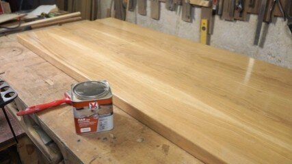 Результат использования водного лака на дубовой столешнице