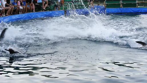 Игривые дельфины - мокрые зрители