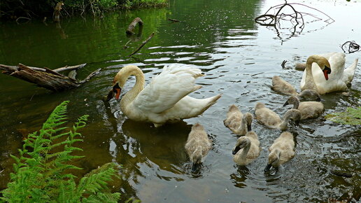 Гамбург. Лебеди с птенчиками на озере Аусенмюлентайх