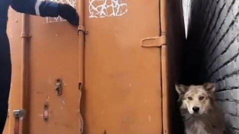 В Биробиджане из техногенной ловушки спасли обессилевшего пса