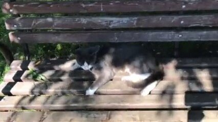 Бездомные коты в тенечке , а Сенька на солнце.
