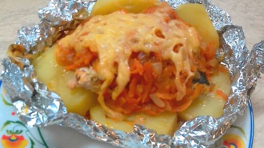 Порционная подача "Горбуша на подушке из картофеля".