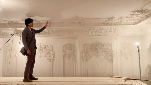 Монтаж гипсовой лепнины в гостиной загородного дома. Палермская коллекция.