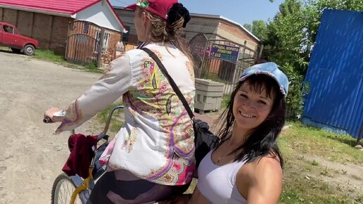 Девочки пилонистки катаются в отпуске на велосипеде)