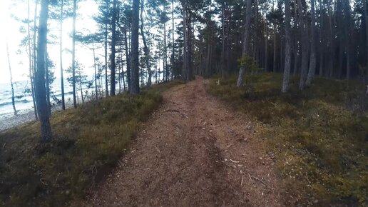 Грунтовая дорога в лесу вдоль побережья Ладожского озера