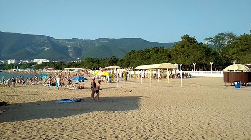 Геленджик 6 ИЮЛЯ 2020 - городской пляж "Дельфин", вечер - людей много, воздух +32, вода +26