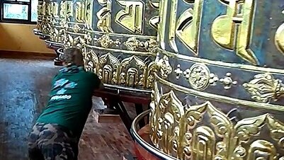 Вращаем огромные буддийские молитвенные барабаны