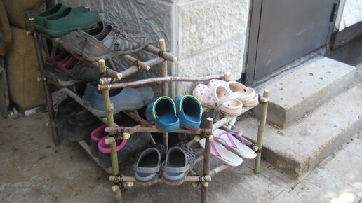 Простые идеи для дачи. Обувная полка из веток своими руками