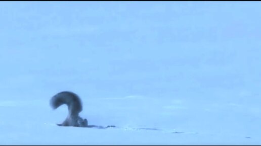 Лиса полностью ныряет в снег чтобы поймать мышь