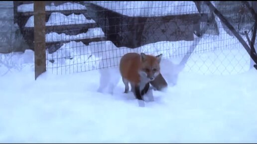 Лисы очень любят снег и бесятся в нем
