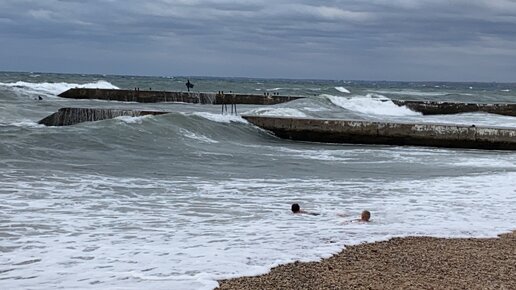 СЕВАСТОПОЛЬ. Шторм на море. Несмотря на запреты спасателей люди в море. Пляж Парка Победы 08.07.2020г.