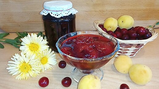 Варенье из вишни и абрикосов. Пятиминутка. Вкусный десерт к чаю. Cherry and apricot jam.