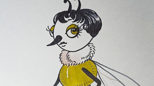 Пчелка с зонтиком, скетч двумя маркерами