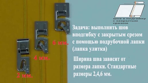 Шов с закрытым срезом с помощью подрубочной лапки(лапка улитка)