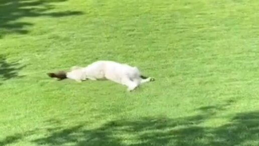Собака любит кататься на горке