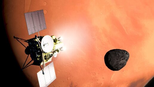 Спутник Фобос, случайно заснятый телескопом «Хаббл» во время наблюдения Марса.