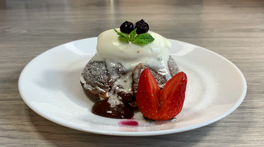 Вкуснейший шоколадный флан с мороженым. Очень нежный и тает во рту!