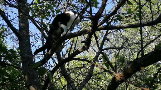 Кошка Лилька скачет по деревьям на даче