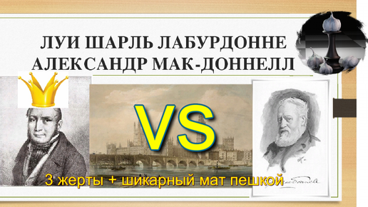 Шахматный боевик 1834 года - Лабурдонне - Мак Доннел: 3 жертвы и прекрасный мат пешкой в принятом ферзевом гамбите