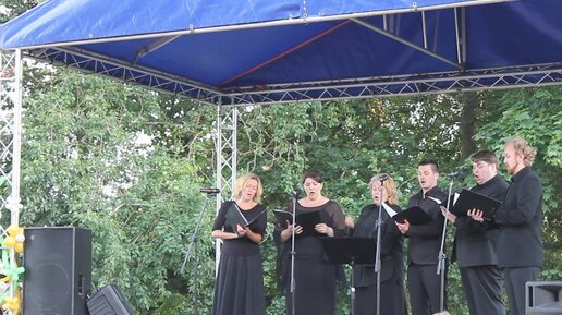 Церковные песнопения возле храма на празднике. Любительская съемка