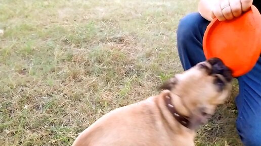 Собака бегает за летающей тарелкой. Французский бульдог Лакшми