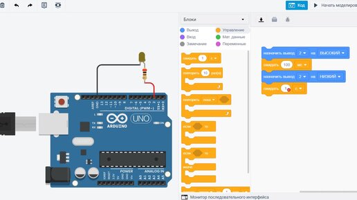 Arduino. Простое программирование блоками. Урок 1 - мигаем светодиодом.