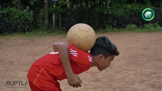 Индийский мальчик повторяет знаменитые футбольным приемы