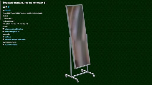 ЗЕРКАЛО НАПОЛЬНОЕ НА КОЛЕСАХ, РАМА ХРОМ, ST-03K