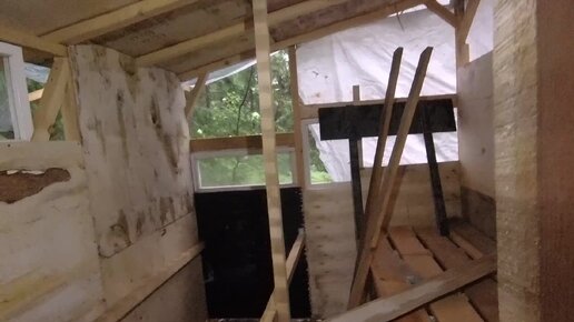 Ливень с молнией в тайге \ Строим избушку