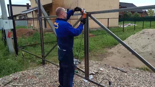 Забор своими руками. Выполняю срезы болгаркой на каркасе.