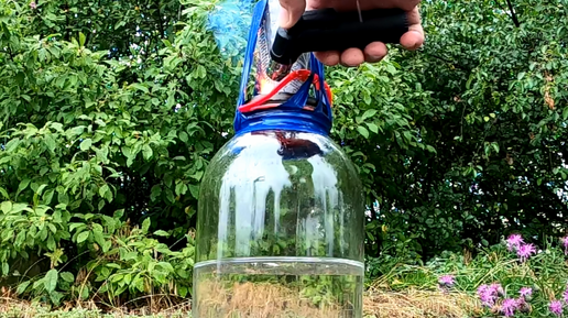 Мощный пиротехнический фонтан, против банки с водой. Что будет?