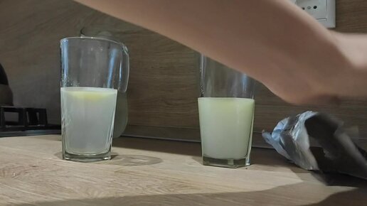 Растворила масло из магазина и из деревни в горячей воде. Показываю, что получилось