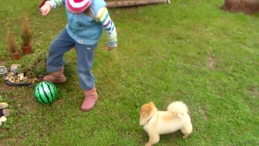 Померанский шпиц играет в футбол 🐕🐕🐕