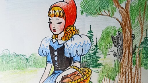 Красная шапочка - быстрый рисунок маркером и карандашами.