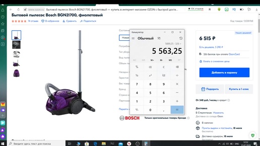 Скидка более 10% на бытовой пылесос Bosch BGN21700 смотри как получить